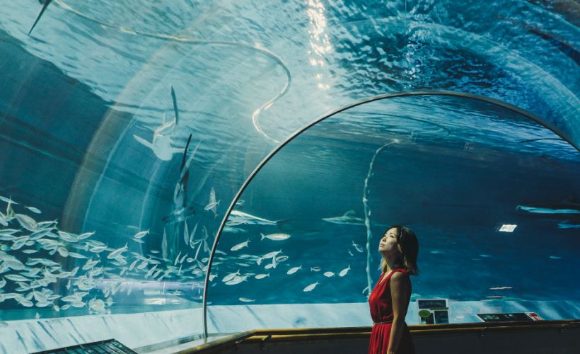 中四国最大級の水族館で、海の生き物約400種1万点を飼育・展示。西日本で唯一シロイルカを見ることができ、水中パフォーマンスが人気です。巨大なパノラマ水槽で、サメやエイ、アカウミガメなどが優雅に泳ぐ姿は大迫力!