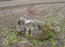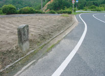 回国塔は巡礼者が諸国をめぐる際、奉仕作業として建てたもの。「右みはら・左おのみち」「文化13年」(1816)と彫られている。