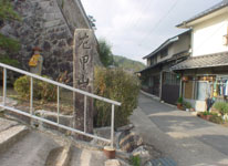 宇津戸には、かつての宿場町らしい景観が残り、観音寺の前に石州街道を示す道標が残っている。