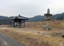 耕地整理による移転があったと思われる所に、辻堂と常夜灯が建って居る。かつては、この辺りに街道が通っていたと思われる。